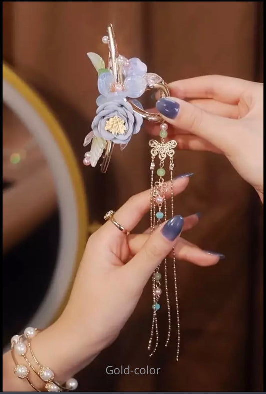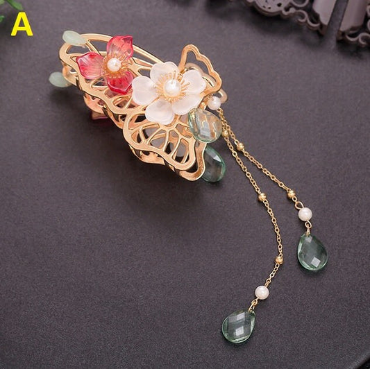 Hanfu inspired flower hair claw clip tassel , chinese hair decor