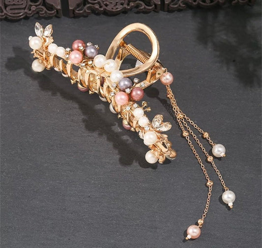 Hanfu inspired faux pearl beads hair claw tassel, Chinese hair decor